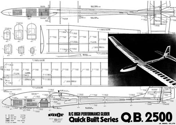 | نوع هواپیما: گلایدر بیموتور و دو کانال | طول بال: mm 2500 |