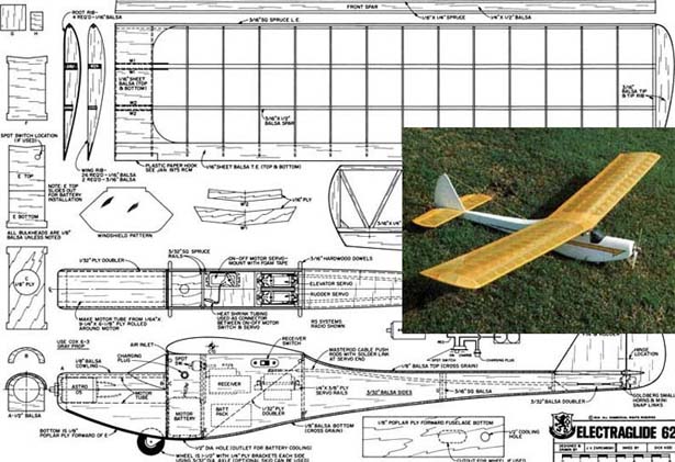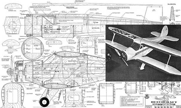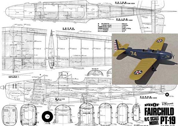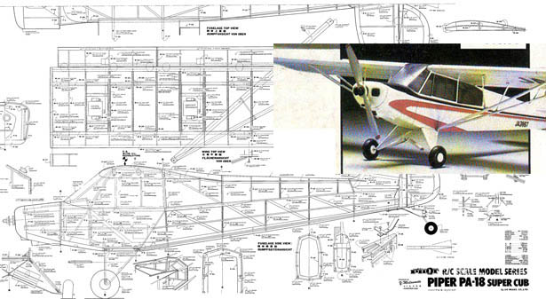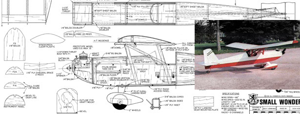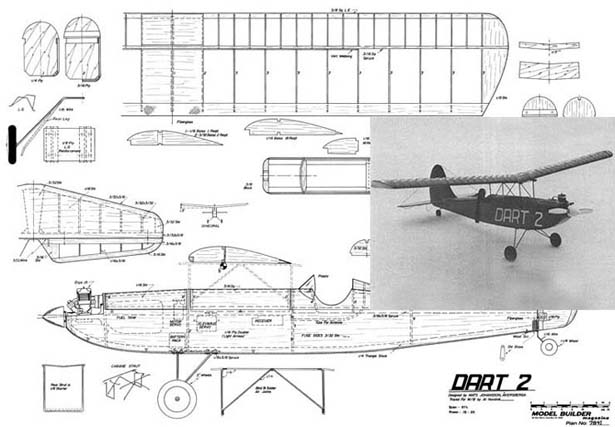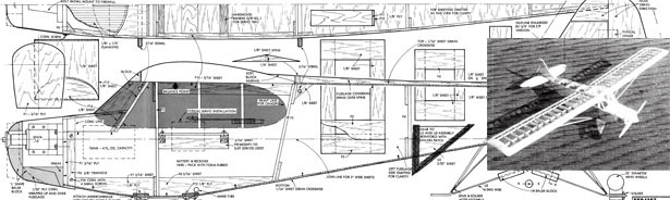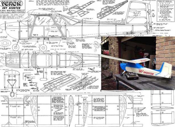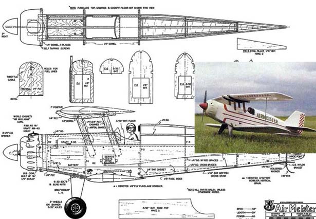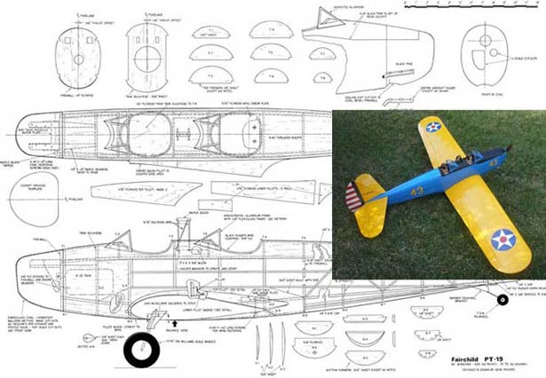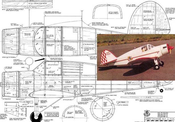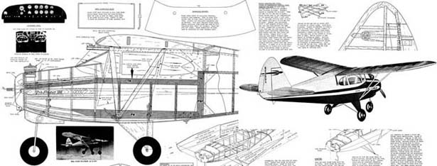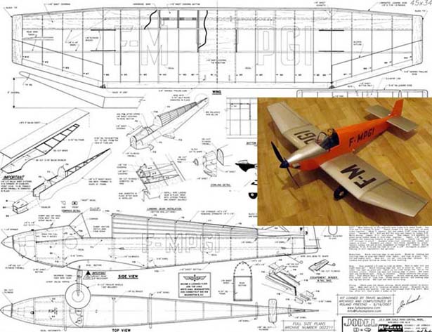 | یک نقشه شامل جزئیات کامل تمام فورمرها و ایرفویلها (این هواپیما از نوع پرواز آزاد است که با کمی تغییر میتوان آنرا مناسب رادیوی دو کانال کرد) | |